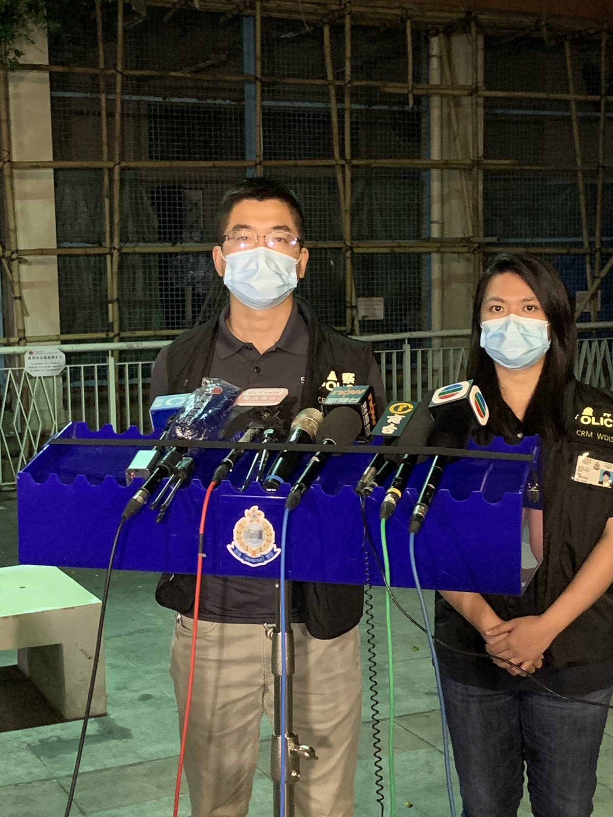 西區警區刑事總督察侯禮文表示,警員在山澗截獲一名63歲、報稱無業的男子,他的外形與報案人所描述的外形吻合,被查問時支吾以對,所以將他扣查,會調查他是否與案件有關。被問到他當時身上是否有血跡,侯禮文回應指,男子當時在山澗以山水清潔雙手,環境證供顯示他的可疑程度大。