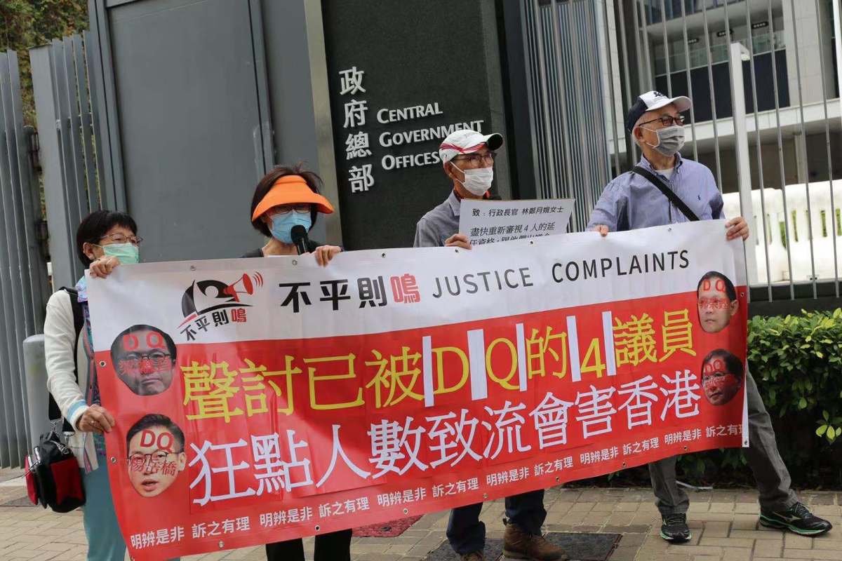 攬炒派議員郭榮鏗、楊岳橋、郭家麒、梁繼昌4人早前在立法會選舉提名期結束前夕被選舉主任撤銷其參選人的資格(DQ),延任後仍繼續惡意拉布,已造成立法會出現3次流會,嚴重損害本港民生。今日(10日)再有多個團體到政府總部請願,聲討4名攬炒派議員,要求政府及立法會盡快DQ。