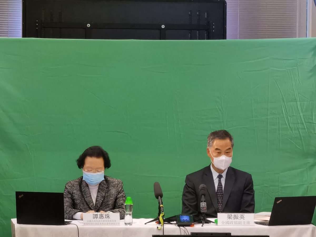 全國政協副主席梁振英,以及香港特別行政區基本法委員會副主任譚惠珠,今日(18日)出席由香港專業聯盟主辦的「《基本法》頒布30周年-『雙循環』戰略-大灣區發展-香港業界的未來」線上研討會。