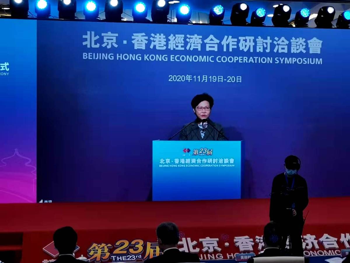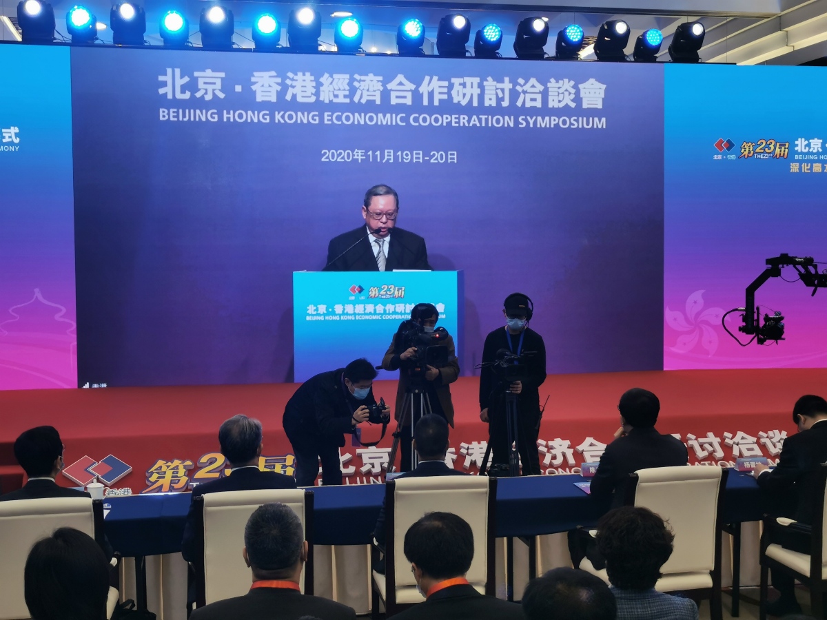 11月19日上午,第二十三屆北京‧香港經濟合作研討洽談會(以下簡稱「京港洽談會」)以綫上方式,在北京、香港兩地同時開幕。北京市市長陳吉寧、香港特別行政區行政長官林鄭月娥、香港貿易發展局主席林建岳分別在北京和香港會場出席開幕式並致辭,國務院港澳辦副主任黃柳權、香港中聯辦副主任仇鴻、外交部駐港特派員公署副特派員楊義瑞等分別在兩地出席。