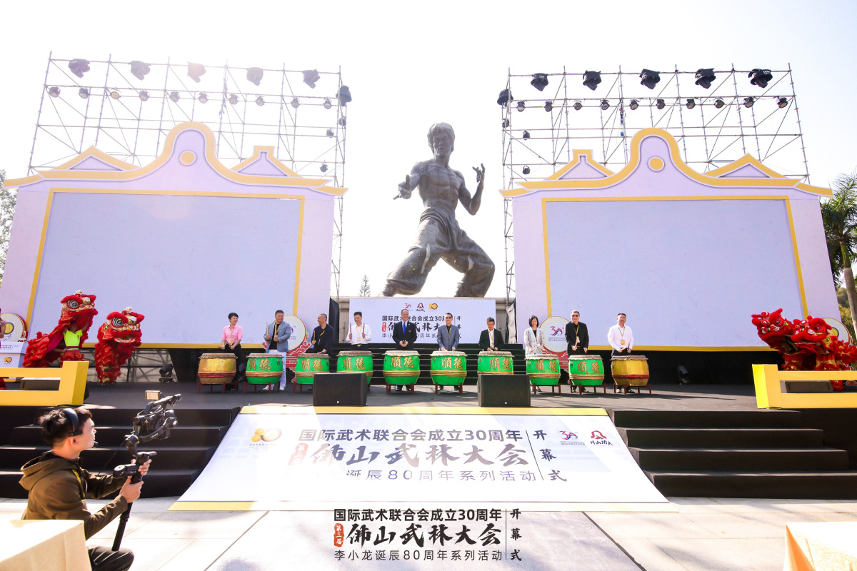 功夫巨星李小龍成名和生活於香港,而佛山是其祖籍和師承地,在李小龍誕辰80周年之際,兩地近日相繼舉辦紀念活動。今天(27日),「國際武術聯合會成立30周年紀念暨第三屆佛山武林大會——紀念李小龍誕辰80周年系列活動」在佛山順德均安李小龍樂園開幕,參賽選手年齡跨度由4歲到70歲,南派拳種和北派拳種分別派出強大陣容參加。