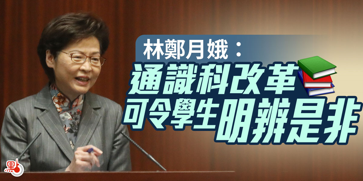 特區政府銳意改革高中通識科,教育界普遍表示認同。行政長官林鄭月娥今日(28日)出席一個電台節目時表示,通識科改革並非政治凌駕專業。她指,通識科推行10年,基礎是要令到學生明辨是非,擁有客觀知識及了解歷史背景等,包括香港是中國不可分割的一部分,基本法源於憲法及「一國兩制」等。