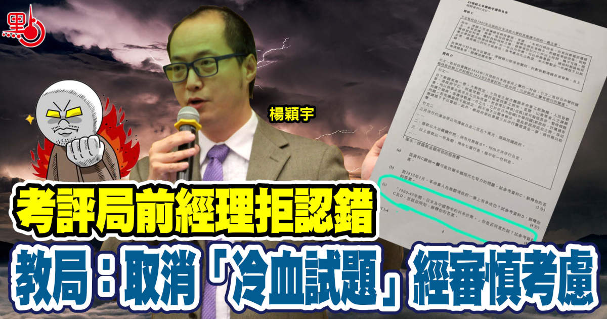 今年5月中學文憑試歷史科評價日本侵華「利大於弊」的冷血試題事件,而負責DSE歷史科命題的前「黃高層」考評局評核發展部經理楊穎宇,早前已辭職意圖逃避責任。日前更向考評局同事發電郵,大放厥詞死撐題目無問題,聲稱辭職原因是受到「政治壓力」,又誣衊考評局早已「設局」,並引述「考評局內部意見」稱當局取消試題時已為他架起「斷頭台」雲雲。