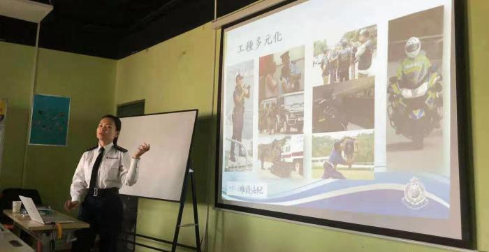 林梅珍在分享中重點介紹了「警隊計劃(內地/海外網絡)PMPO」,讓有志於成為警務督察,服務社會的香港學生,可以更加充分地進行未來的職業規劃。