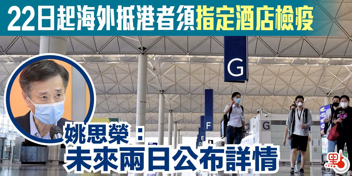 本港第四波疫情來勢洶洶,確診個案居高不下,不少海外留學生將趁聖誕假期返港,而政府則與多家酒店洽商,將有關酒店作回港人士檢疫用途,屆時回港人士會由專車送往「指定酒店」隔離檢疫,以嚴防輸入個案,消息指措施將於本月22日起實施,政府明日(11日)將公布指定酒店檢疫的名單。旅遊界立法會議員姚思榮今日(10日)回應指,政府未來兩日會公布指定酒店檢疫計劃的詳情。