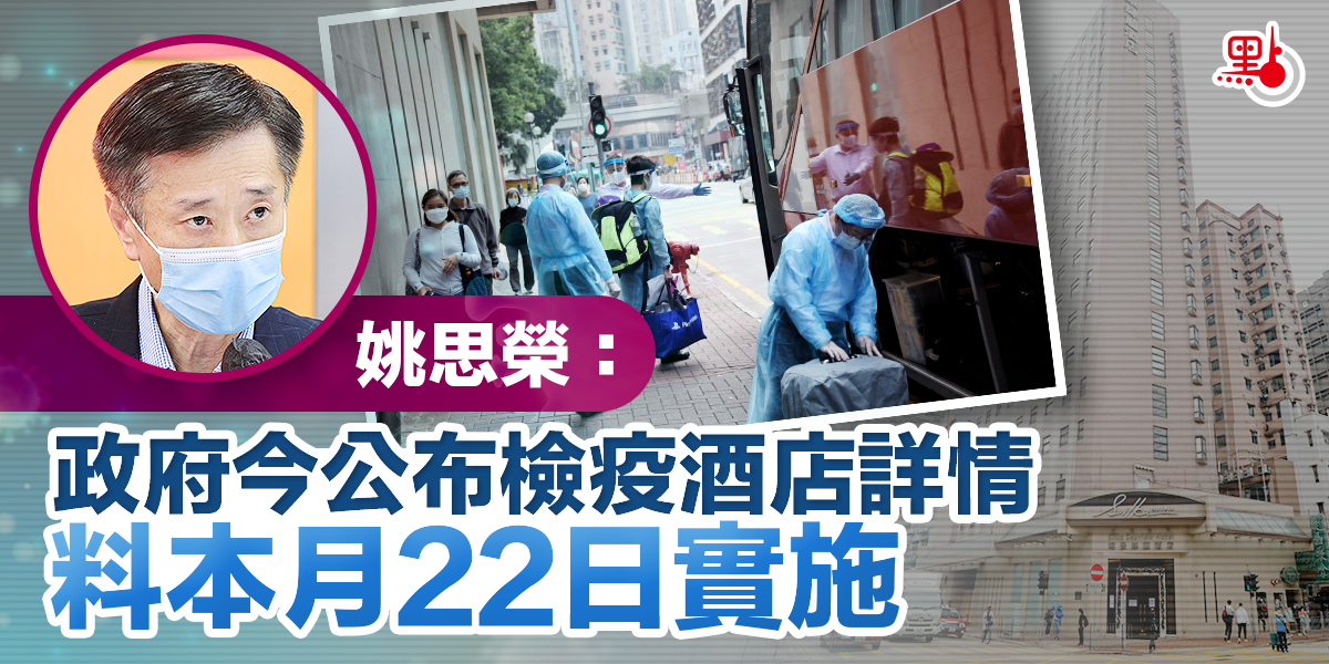 姚思榮又指,當局本星期已派人視察酒店,了解是否滿足檢疫需求,現時各區都會有檢疫酒店,估計稍後會再推出第二輪,滿足長假期回港人士的需求。他形容本港疫情已經拖得太長,酒店業快撐不下去,只好轉型做檢疫酒店保持收入。