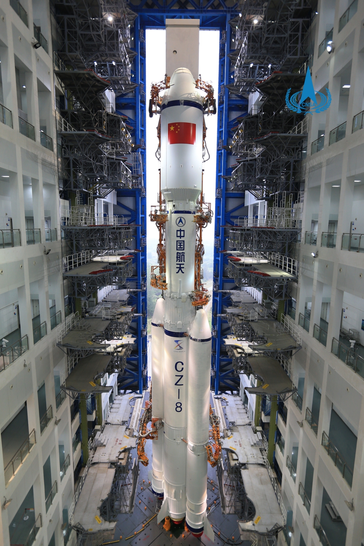 國家航天局透露,今日上午8時20分,承載着長征八號遙一運載火箭的活動發射平台,駛出發射場垂直測試廠房,平穩行駛並安全轉運至發射區。其後,火箭將加註推進劑,按計劃實施發射。