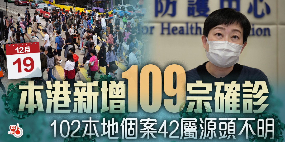 本港新冠肺炎疫情依然嚴峻,衞生署衞生防護中心傳染病處主任張竹君今日(19日)下午在疫情記者會上表示,截至今日凌晨零時,本港新增109宗新冠肺炎確診個案,包括102宗屬本地個案,當中42宗感染源頭不明,另外有7宗屬輸入個案,累計個案總數突破8000宗。