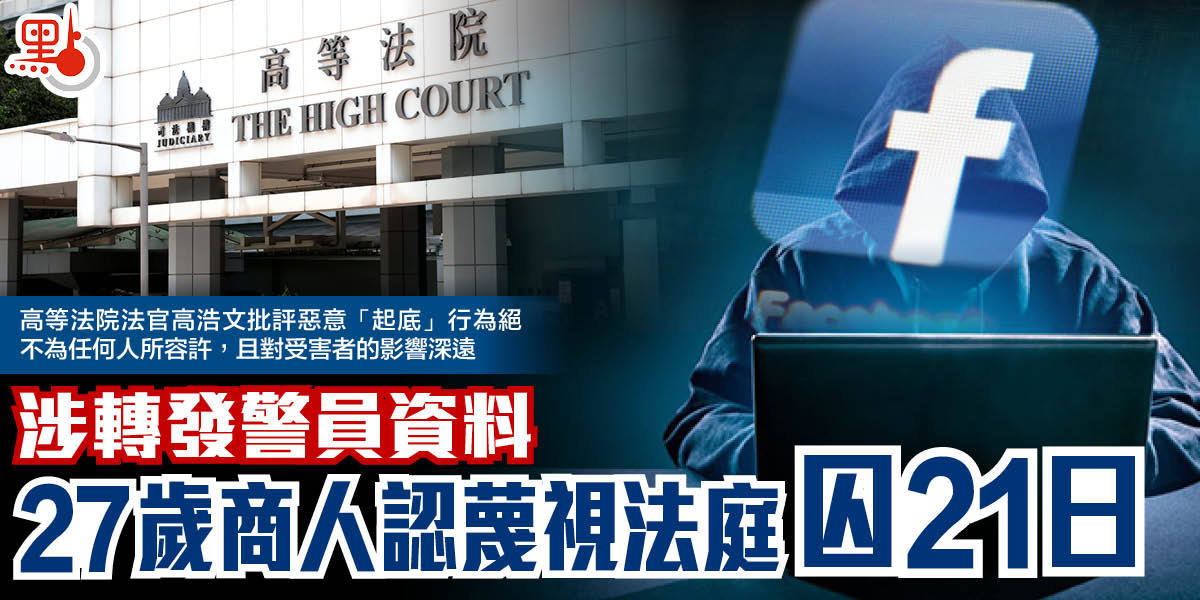 高等法院去年10月頒布禁制令,禁止任何人公開發布警員及其家屬的個人資料。一名27歲店鋪東主陳健聰於去年11月11日公開在社交媒體轉發載有西灣河開槍警員及其家人個人資料的帖文,違反高院已頒發禁止「起底」騷擾警務人員的臨時禁制令。陳健聰早前承認藐視法庭,高等法院法官高浩文今日(28日)判處被告即時監禁21日,不得緩刑,另要支付2萬港元訟費。