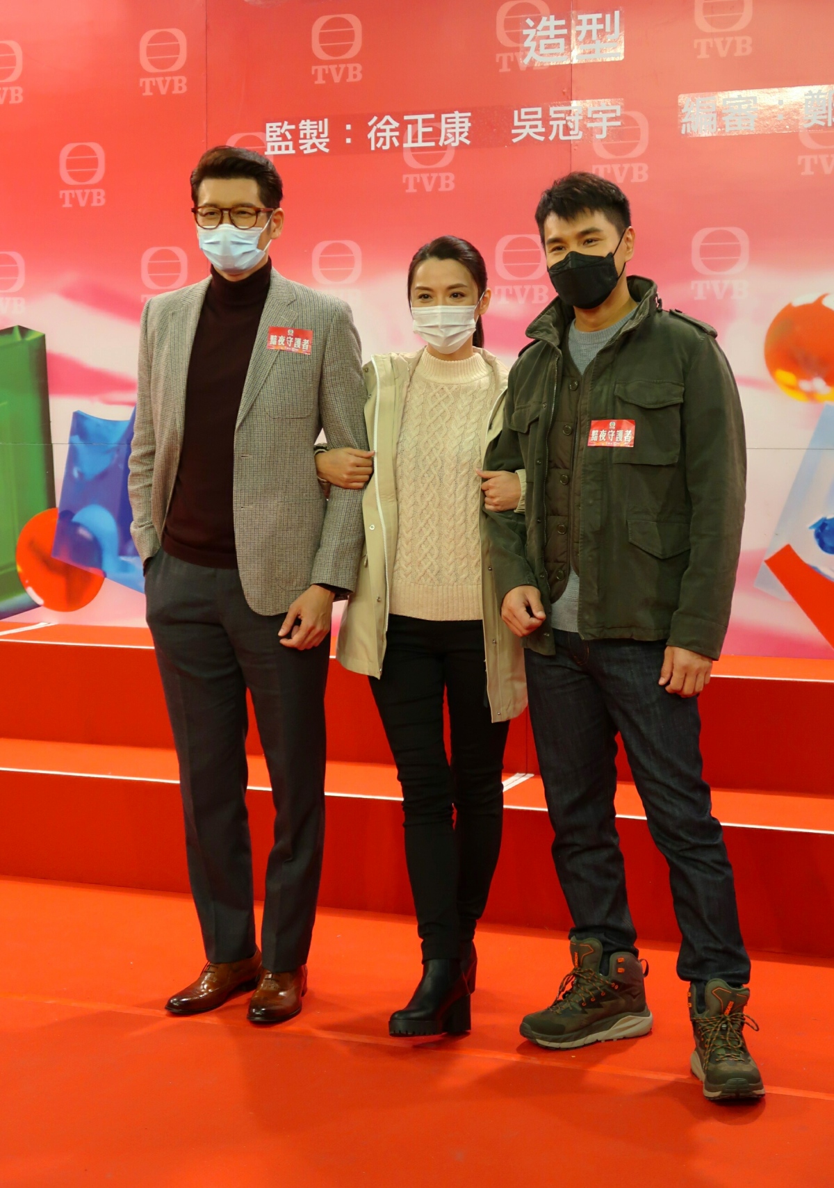 陳展鵬、陳煒(煒哥)和袁文傑等一眾藝人,今日(29日)出席無綫新劇《黯夜守護者》造型記者會。陳展鵬表示,大家經常在公司見面,一直都想再合作,「今次得償所願。」他又透露連同《黯》劇共有4套劇集存貨,但希望可以分開播出。