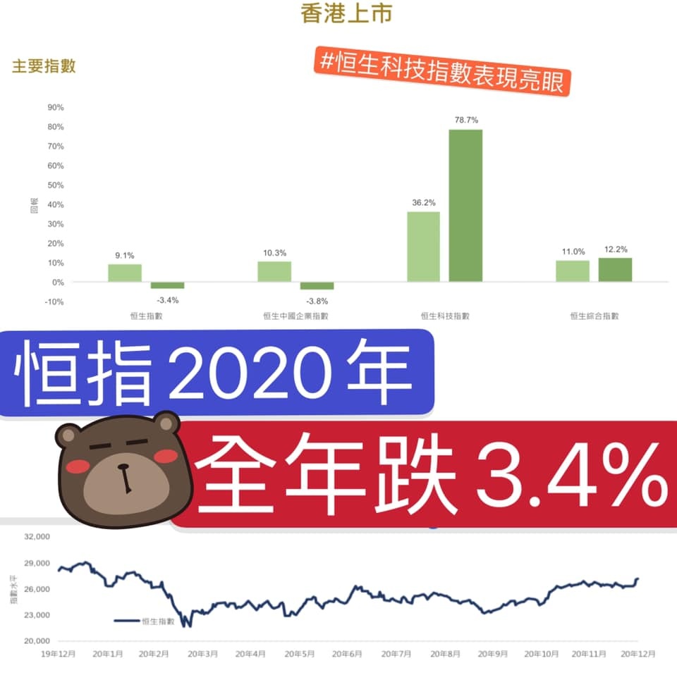 今日(31日)係本年度最後一個交易日,係時候「埋單」計下數。恒生指數最新公布2020年總結報告,指2020 股市在全球疫情拖累下,唯獨與科技相關指數能跑出。
