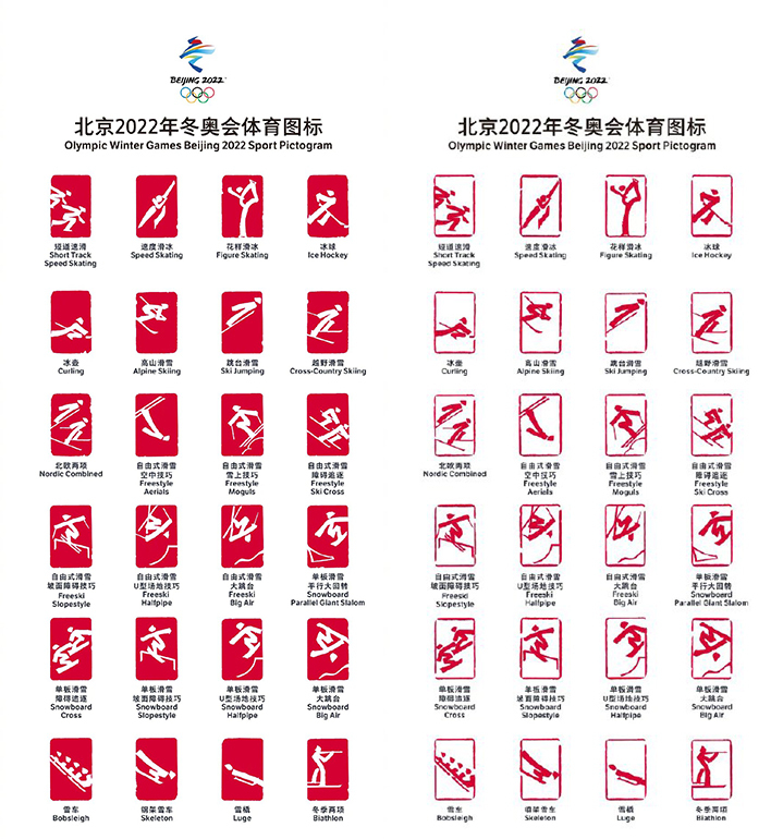 據介紹,體育圖標是歷屆奧運會的「規定動作」,是對體育項目的圖形化詮釋。歷屆奧運會的體育圖標都體現了舉辦國與舉辦地獨具匠心的創意設計、理念與文化背景。北京冬奧會和冬殘奧會體育圖標包括24個冬奧會體育圖標和6個冬殘奧會體育圖標。設計以中國漢字為靈感來源,以篆刻藝術為主要呈現形式,將冬季運動元素與中國傳統文化巧妙結合,展現出冬季運動挑戰自我、追求卓越的特點,凝聚了中國傳統文化的厚重與精深,彰顯了北京冬奧會和冬殘奧會的理念和願景。
