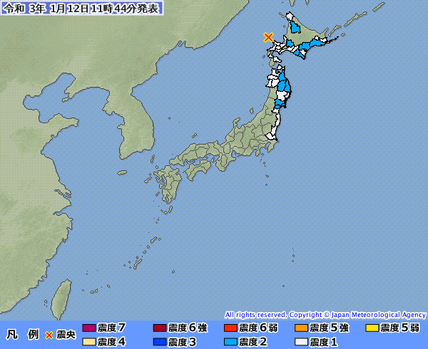 根據日本氣象廳公布的觀測資訊,1月12日10時39分在日本北海道西方近海(北緯43.66度,東經140.16度)發生5.6級地震,震源深度230千米。