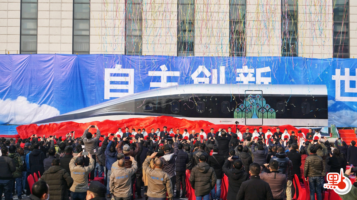 點新聞記者在現場了解到,由內地自主研發設計、自主製造的世界首台高溫超導高速磁浮工程化樣車,設計靈感來源於孔雀,採用全碳纖維輕量化車體、低阻力頭型、大載重高溫超導磁浮技術等新技術和新工藝,設計時速620千米,有望創造在大氣環境下陸地交通的速度新紀錄。