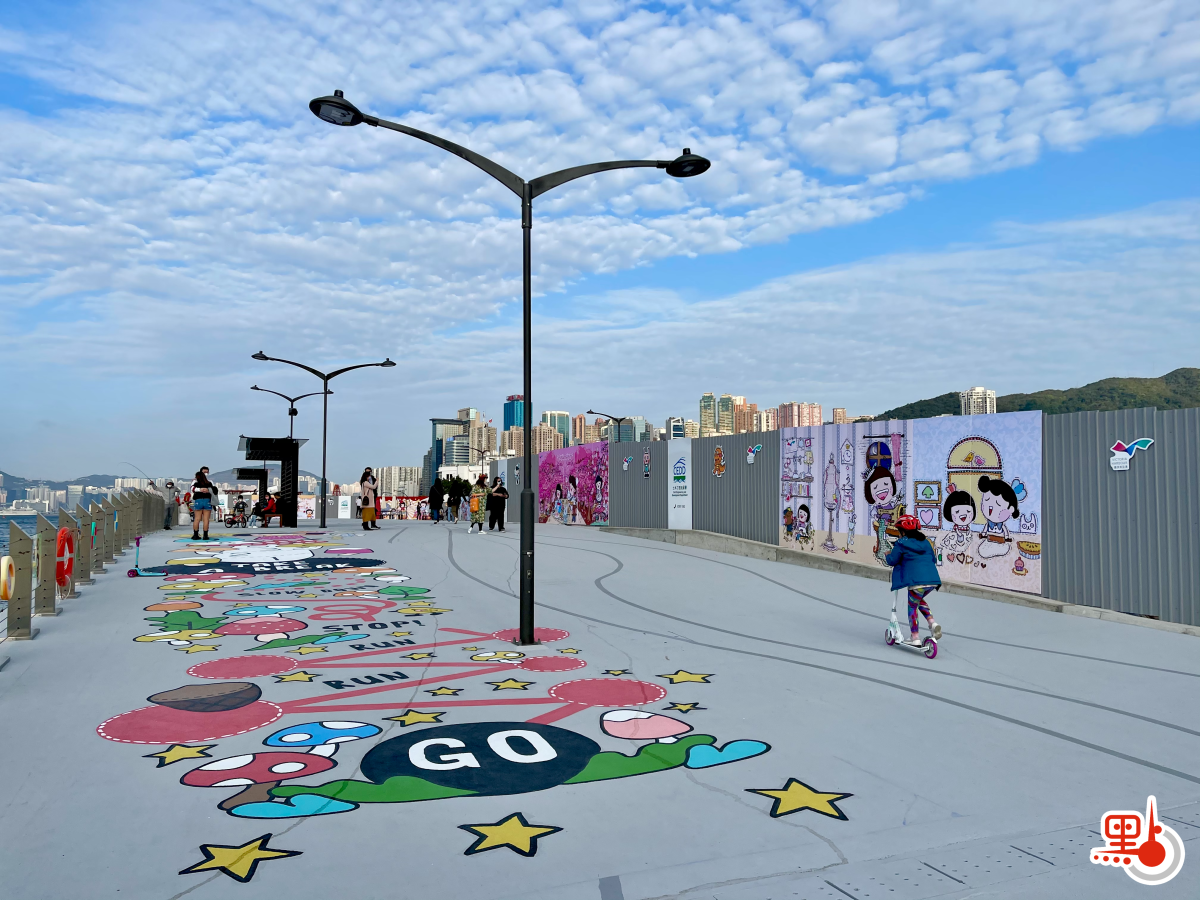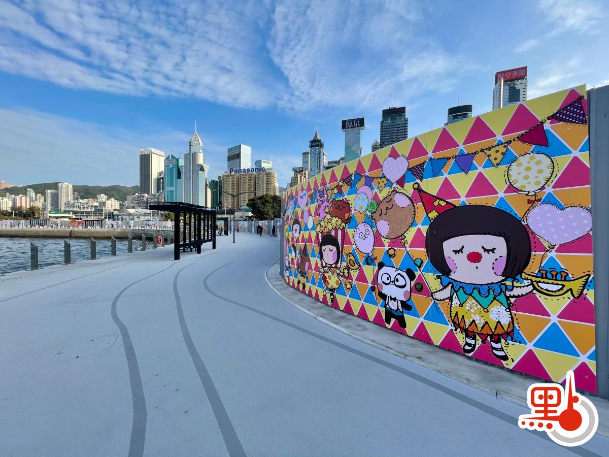 長廊內有一系列 Chocolate Rain 的卡通主題畫作和布置,還有期間限定的「粉紅通道」,讓市民更容易辨識路徑,及營造別具個性的遊人體驗。長廊內到處都係影相位,是市民休閒打卡、垂釣玩樂、吹着海風欣賞維港美麗景緻的好去處!