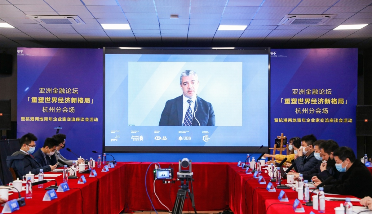 受疫情影響,由香港特區政府及香港貿發局共同主辦的第14屆亞洲金融論壇今(18日)明兩日轉至線上舉行。圍繞「提升服務業國際化水準,打造杭港國際高端服務業集聚區」,香港貿發局與杭州上城區政府設立亞洲金融論壇杭州分會場,舉辦杭港青年企業家交流座談會,共話兩地青年企業家如何抓住機遇,融入國內大循環和國際國內雙循環。