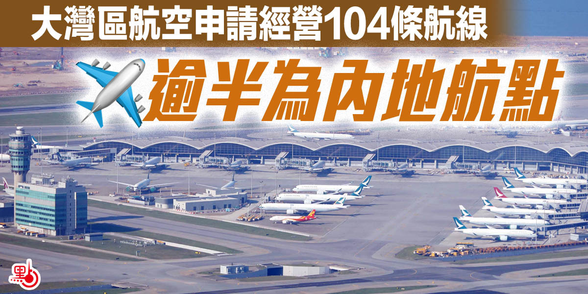 政府今日(22日)刊憲,空運牌照局公布,大灣區航空申請經營在香港和往來香港的客運、貨運或郵件服務,涉及共104個航點,涵括多個內地城市,包括上海、北京、成都、南京等,還有東京、大阪、新加坡、曼谷、關島等地方。