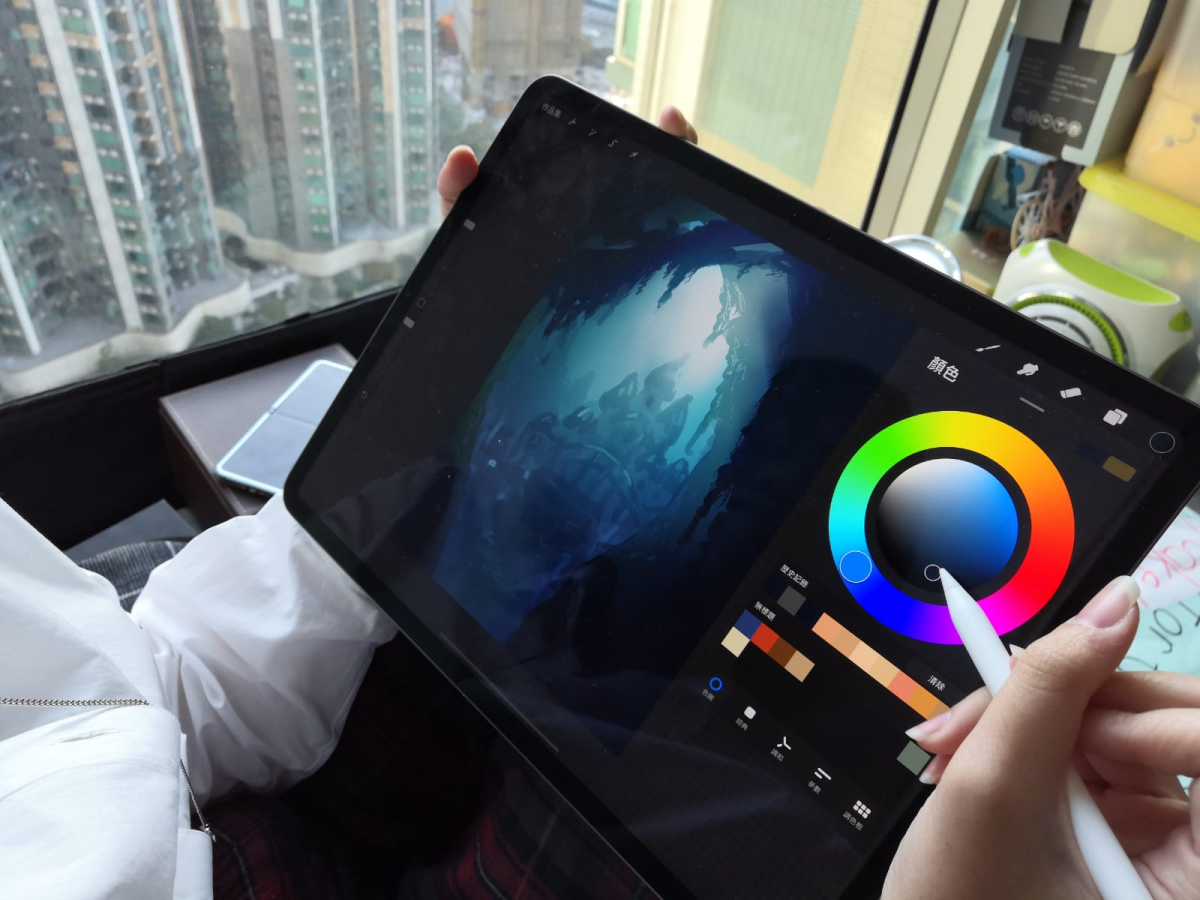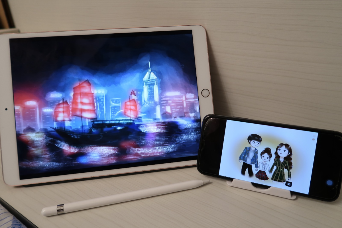 天馬行空、充滿幻想是鮑森蕾的代名詞,喜歡在畫紙上勾畫豐富的內心世界。這個小畫家十分緊貼藝術潮流走向,讀小四時就留意多媒體創作,自學製作動畫。小五更研究電腦繪畫,一堅持便是五年。電繪是近年興起的繪畫方式,利用電腦、手機、平板電腦等電子媒介軟件,結合特定技巧畫圖創作。最大優點是可反覆修改,放大縮小細節,其次是顏色真實、細膩,可以實現素描、水彩、噴漆、油畫、發光等效果。鮑森蕾表示,這些特點正是吸引她之處,「一部iPad同一支Apple Pencil就搞掂,有靈感就攞出嚟畫,唔會限制我嘅畫畫風格。」