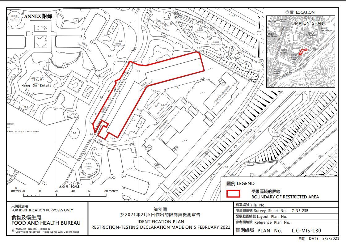 本港新冠肺炎疫情嚴峻,政府繼今日(5日)晚上7時起圍封元朗媽橫路富來花園後,相隔半個多小時後再宣布,晚上7時35分起圍封馬鞍山恆安邨恆江樓,「受限區域」內居民須強制檢測,直至區內所有已識別的受檢人士完成檢測,而相關檢測結果亦已獲大致確定,方可離開其處所。政府目標是在明早約7時完成行動。
