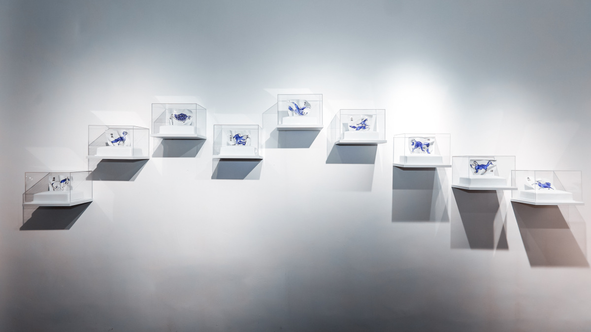 香港新晉藝術家許開嬌結合傳統和當代的元素,把紙巾轉化成畫有《山海經》詭異妖怪和奇珍異獸的陶瓷作品。另一作品則受香港金魚街的特色都市景觀啟發,在透明膠袋上刺繡活潑可愛的金魚。香港著名年青設計師梁展邦受《山海經》不同的詮釋方式啟發,將平日被扔棄的木盒改變為香座,煙香刻畫時間流逝,積聚的香灰令時間變成可量度的重量。許開嬌和梁展邦又以口罩、消毒用品和購物膠袋上的圖案等日常物品,創作出兩組霓虹燈作品,映照出疫情下的新常態和生活裏不曾留意的小驚喜。
