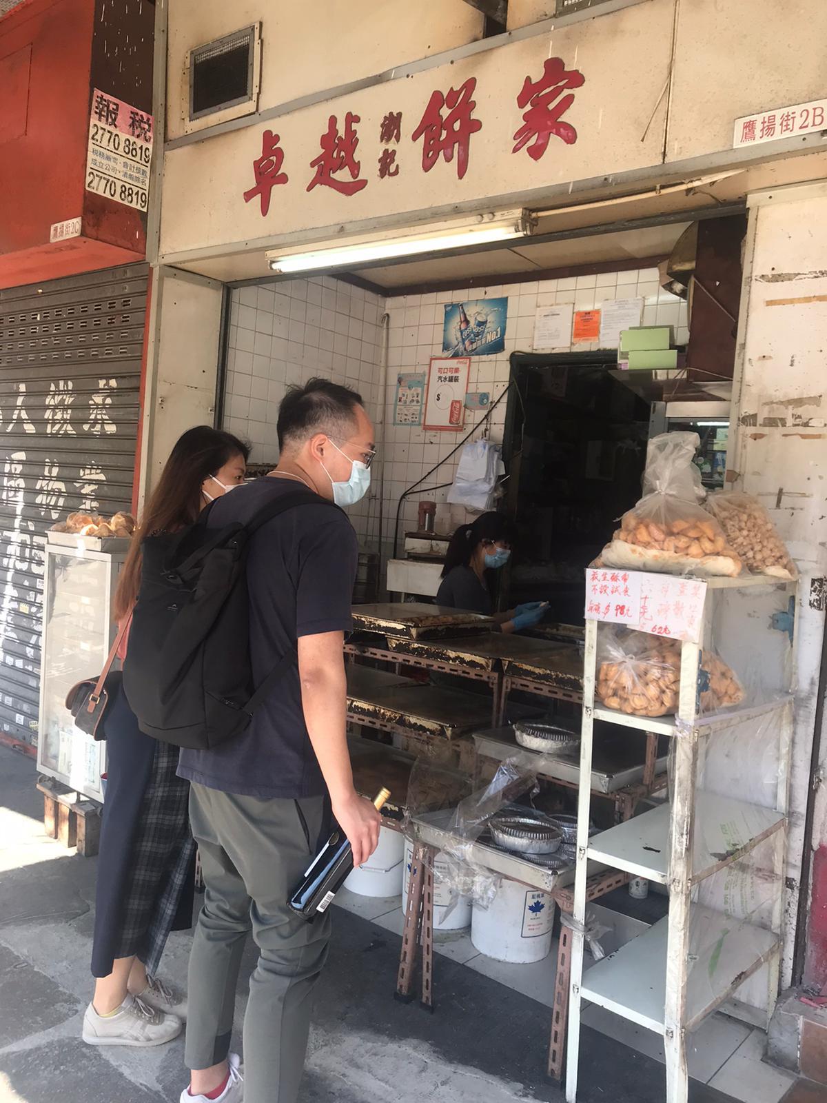 劉太坦言,疫情暫未有影響生意,因大部分都是做熟客,他們過時過節都會買很多賀年食品,採訪當日就有客人一次過訂了10底黃糖年糕自取。不過,除常用的麵粉沒有加價,其他配料如椰漿、油鹽等來貨價都提高了,但劉太指不會將成本轉嫁給客人,且餅家多年來亦沒加價,「無所謂啦!都是街坊。」適逢一對情侶跨區來幫襯,「我買過幾次,佢哋嘅笑口棗同角仔都好好食,今日特登趁過年前再嚟入貨。」劉太直言不想太出名,「太出名好多客嚟都招呼唔到,手只係得兩隻。」劉太請記者吃了一粒笑口棗,果然外酥內軟,完全沒有油膩感,問她有什麼製作秘訣,「沒有啦,好多舖頭都識做,不過人人手勢力度唔同,味道都各有特色。」