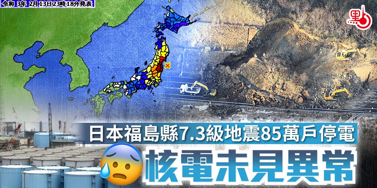 日本福島縣對開海域發生的地震,氣象廳向上修訂強度為黎克特制7.3級。日本東北和關東地區約有85萬戶停電,當局正搶修,地震導致100人受傷。首相菅義偉說沒有發生海嘯的危險,又指沒有收到核電廠出現異常的報告。