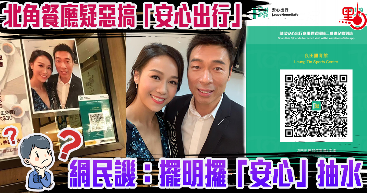 政府宣布明日(18日)起有條件放寬部分社交距離措施,包括恢復晚市堂食至10時,限4人一枱,點知北角就有餐廳喺fb專頁「人人和平小飯店」發起投票,將之前捲入出軌醜聞嘅男藝人許志安同埋女藝人黃心穎大大張「安心」合照貼喺餐廳正門,疑似以「戲謔」手法令食客們注意到「安心出行」二維碼張貼位置。被問到兩人同掃二維碼咩關係,餐廳留言話:「心穎係我偶像志安係我榜樣」。