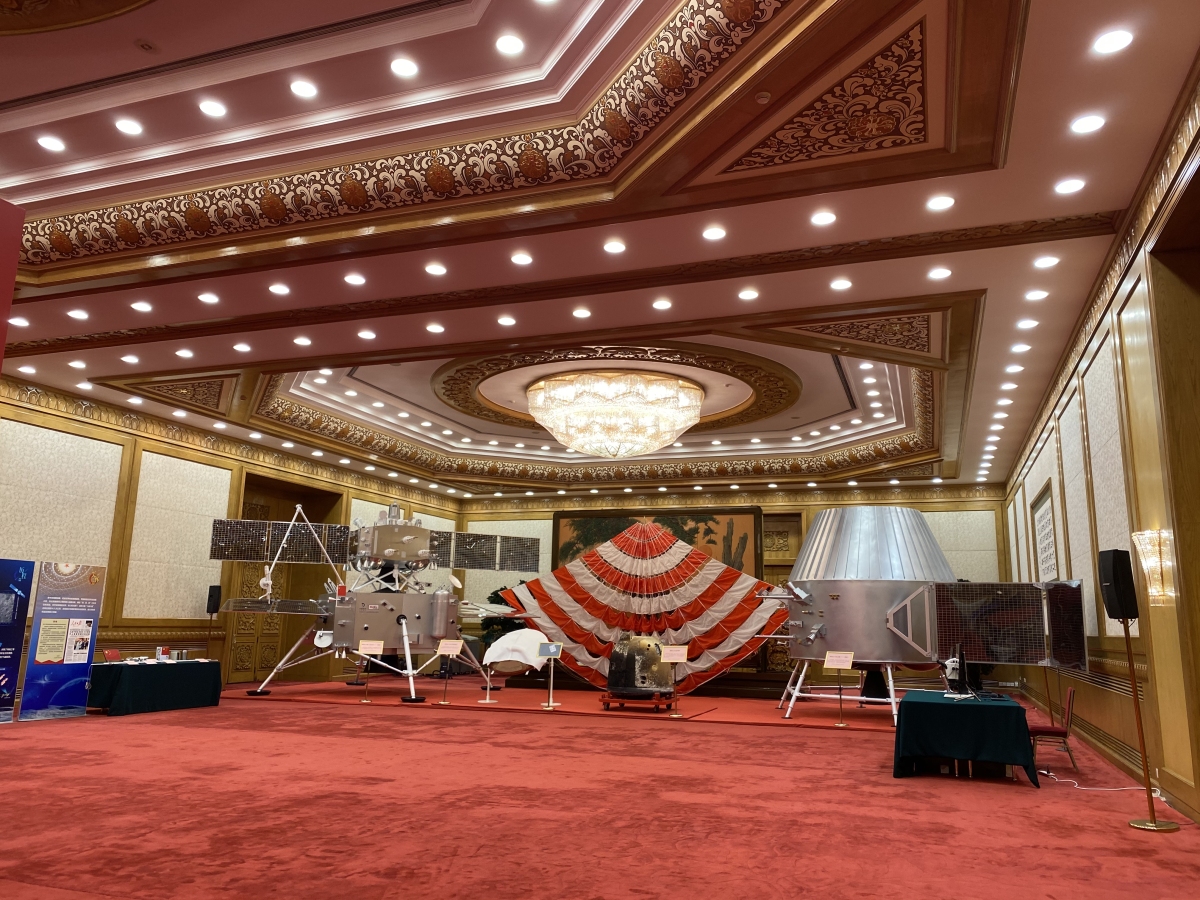 據悉,該套模型從去年12月中旬開始設計,今年1月12日製作完成,具體負責此項任務的是國家航天局探月與航天工程中心、嫦娥奔月航天科技(北京)有限責任公司。1月15日雙方在東莞鳳崗進行交付,隨即運往北京,與之前與該公司研製的1:1火星車模型一同安裝在人民大會堂東大廳。