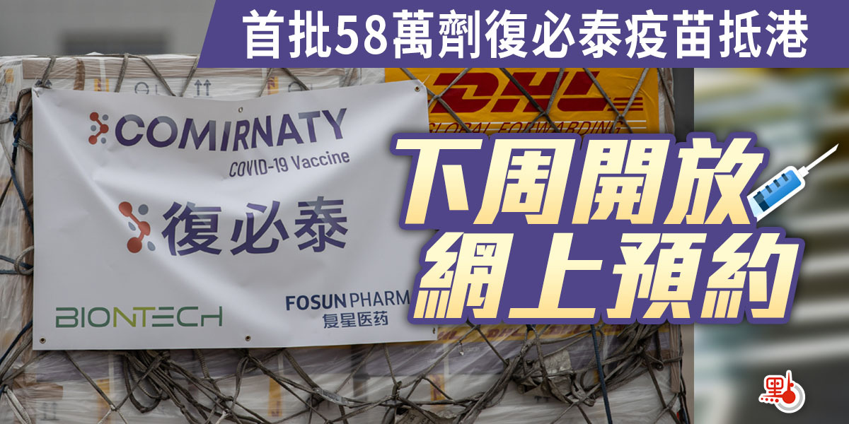 政府今日(27日)表示,由復星醫藥與BioNTech共同開發的復必泰疫苗會從德國分兩班航班運送到港。本港訂購的首批復必泰疫苗共有100萬劑,今日已運抵香港的有58萬5千劑,餘下劑量將於3月初運送抵港。政府發言人表示,因應復必泰疫苗抵港,將會在下周開放網上預約系統,讓市民預約接種復必泰疫苗,具體安排會適時公布。