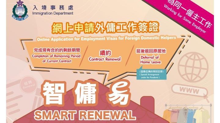 入境事務處今日(5日)推出「智傭易」服務,讓經網上遞交續聘外籍家庭傭工簽證申請的人士,在申請獲批後可選擇以不同方式繳付簽證費,並透過郵遞方式領取簽證,無須親身到入境處辦事處辦理有關手續。