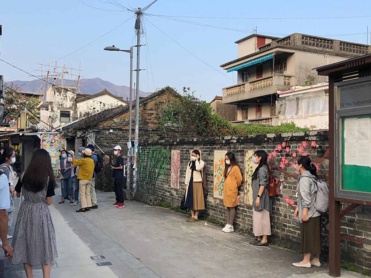 近期有大量巿民暢遊錦田壁畫村,雖然遊人的面容都被口罩掩蓋了,但從他們在壁畫前「擺甫士」拍照留影的動作,仍能感受到他們看見壁畫時的興奮心情。疫情之下,希望遊人遵守防疫措施,切勿除罩拍照。
