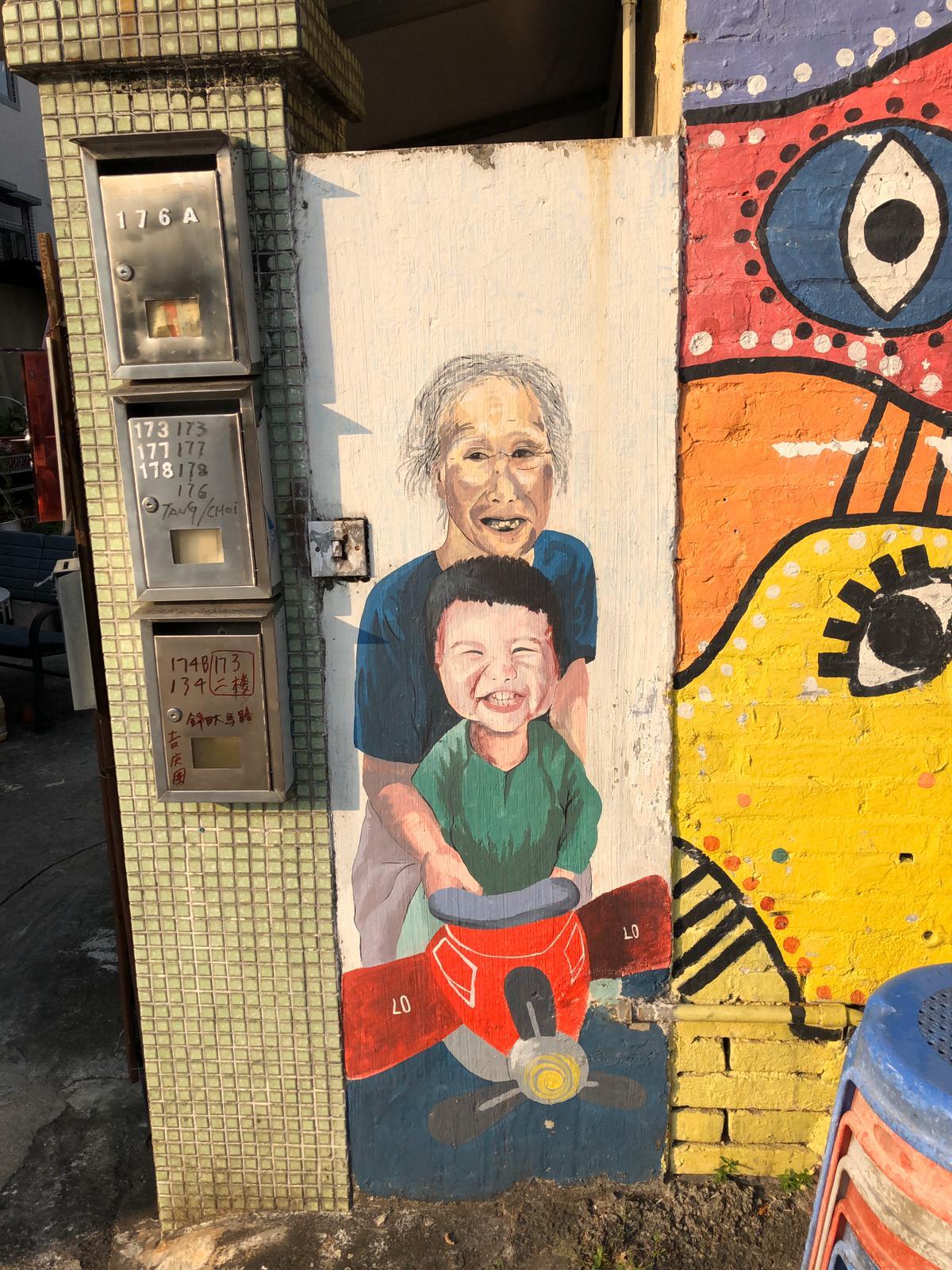 吉慶圍是香港著名圍村,至今已有逾500年歷史,其獨特建築特色被列為一級歷史建築,而圍村四周則有大量石屋及鐵皮屋。郭燕銘起初帶着兩個學生走訪錦田,一見到有合適牆身,便立即叩門介紹壁畫村計劃。「原本擔心會被拒之門外,之後卻發現村民十分支持,他們不但認為計劃能美化社區,更可提供機會讓學生發揮所長,不少牆身更是村民主動提供。」