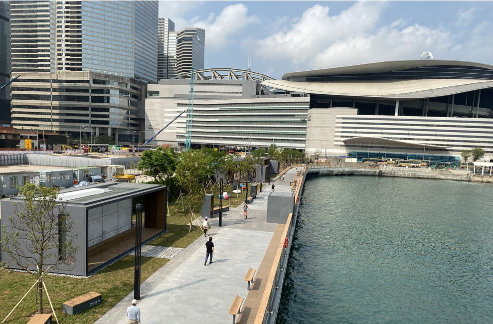 發展局發言人表示,新開放的空間介乎香港會議展覽中心至灣仔碼頭之間。在「先駁通,再優化」的理念下,一段約5米闊的臨海路段於去年12月已率先落成開放,貫通灣仔北至石塘咀,成為維多利亞港最長、5.5公里的海濱長廊。今日開放的用地面積約2750平方米,將長廊的空間擴闊3倍。