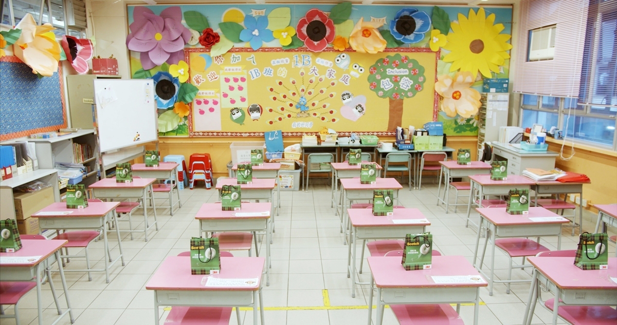 隨着疫情緩和,學校終於局部恢復面授課。不過,同學仔之間的印象就可能只有一張張戴着口罩的面孔,特別是小一學生可能連同班同學的樣貌也未能完全認清。位於九龍大角咀的鮮魚行學校與3M攜手,以紙花藝術將一年級課室布置成繽紛的大自然花園,讓重返校園的莘莘學子展現開心笑臉。