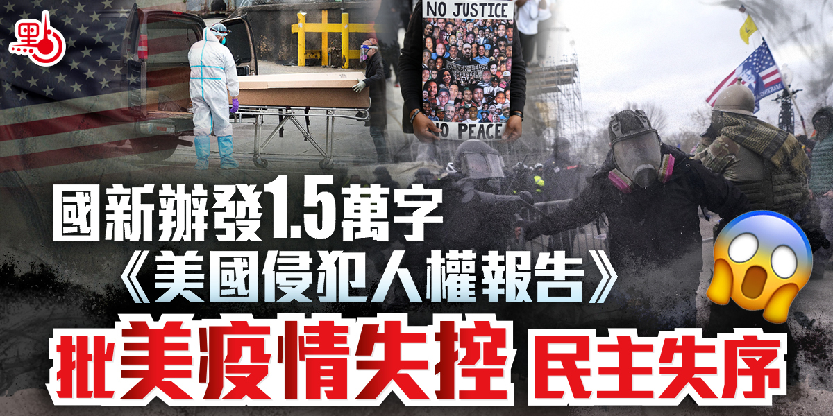 國務院新聞辦公室今日(24日)發表《2020年美國侵犯人權報告》,對美國侵犯人權的狀況進行揭露。報告分為序言、疫情嚴重失控釀成人間悲劇、美式民主失序引發政治亂象、種族歧視惡化少數族裔處境、社會持續動盪威脅公眾安全、貧富日益分化加劇社會不公、踐踏國際規則造成人道災難,全文約1.5萬字。