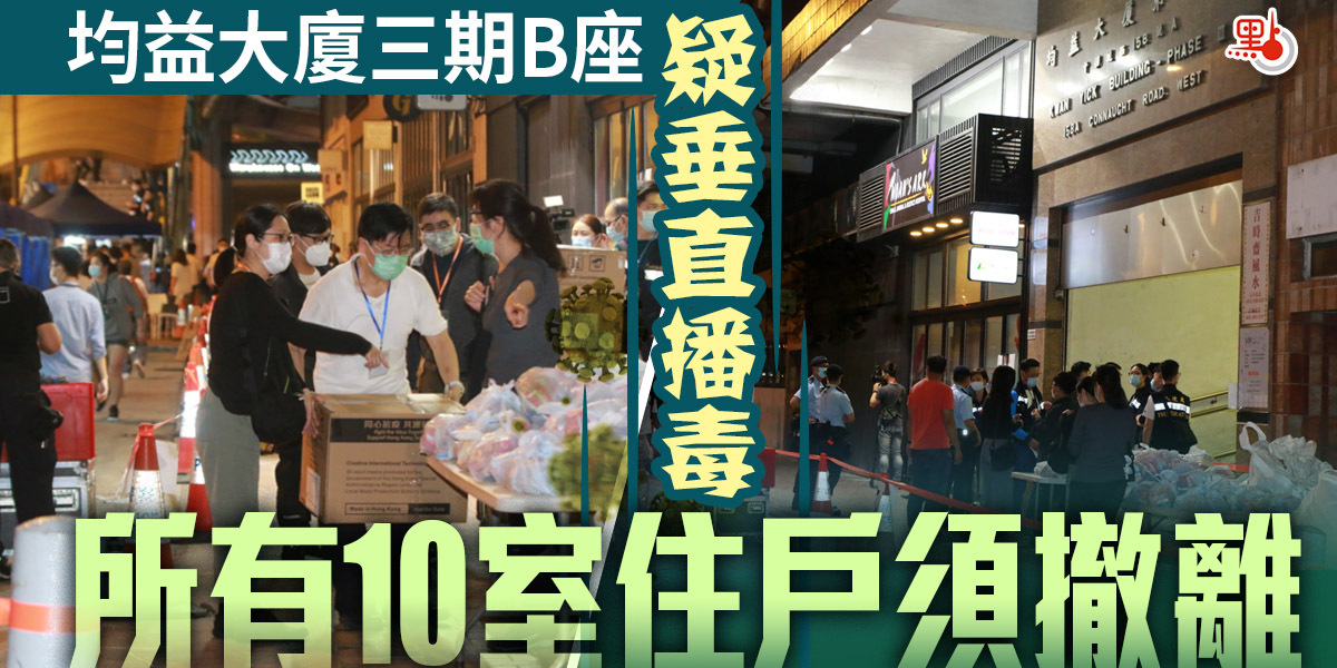 本港今日(31日)新增6宗新冠病毒確診個案,包括一宗本地源頭不明個案,患者居西營盤均益大廈第三期B座,樓下同座向單位早前亦有一家人確診。政府專家顧問、港大微生物學系講座教授袁國勇及衞生防護中心人員今晚到場視察。衞生防護中心表示,在諮詢專家意見後,中心決定除了有患者的兩個單位,衞生署會向均益大廈第三期B座所有樓層的10室單位(即2至23樓)沒有病徵的住戶發出檢疫令,並安排他們入住檢疫中心。若住戶出現病徵,會被送往醫院接受治療。