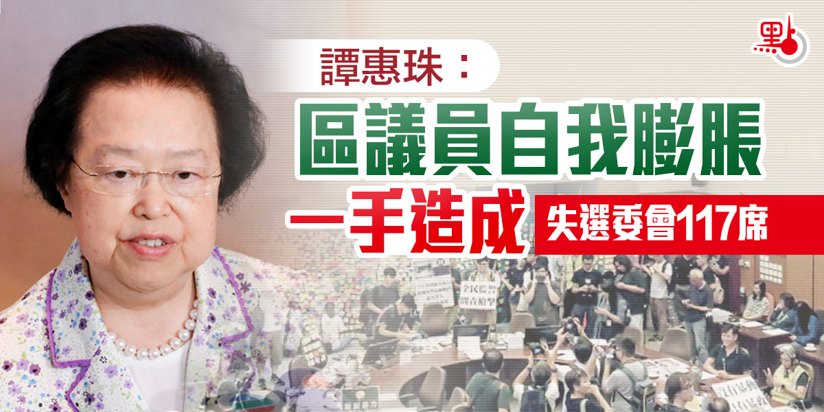 譚惠珠表示,「區議會這個悲劇,由於他們自己沒做到區議會應該做到的事,自我膨脹,與官員對立,搞政治,如仍放在選舉委員會,點講得過去?」