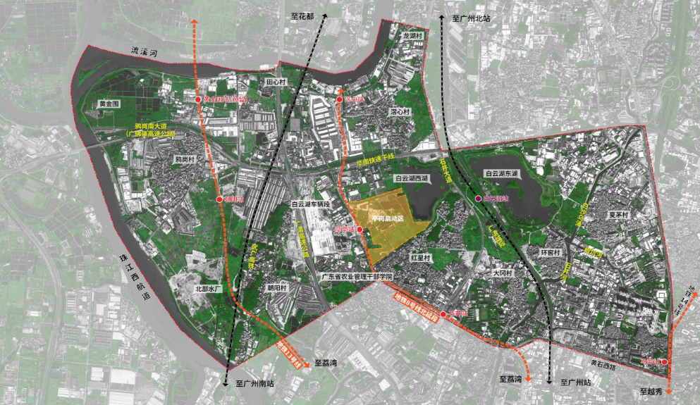 《方案》明確,「白雲湖數字科技城」規劃面積達28平方公里,西接珠江西航道,與佛山南海隔江相望,是廣州白雲區「一園一城一示範區」的重要組成部分。目前規劃6條地鐵線覆蓋,正推進廣佛環城際、地鐵12號線、佛山地鐵8號線東延線等建設;同時,將發揮白雲國際機場、廣州火車站、白雲火車站等重要對外交通樞紐優勢,加快建設廣清城際白雲湖站,推進廣深港高鐵線路引入該科技城。