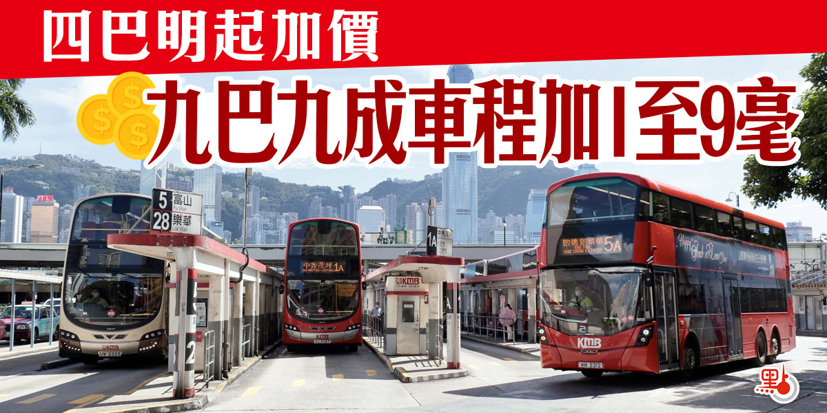 根據九巴公告,將於明日凌晨2時30分起調整票價,約350條九巴獨營路線平均加幅為5.8% ,51條聯營過海路線則為8.5%。「九巴月票」票價則維持不變,維持於780元。新票價實施後,九成乘客每程多付1毫至9毫。