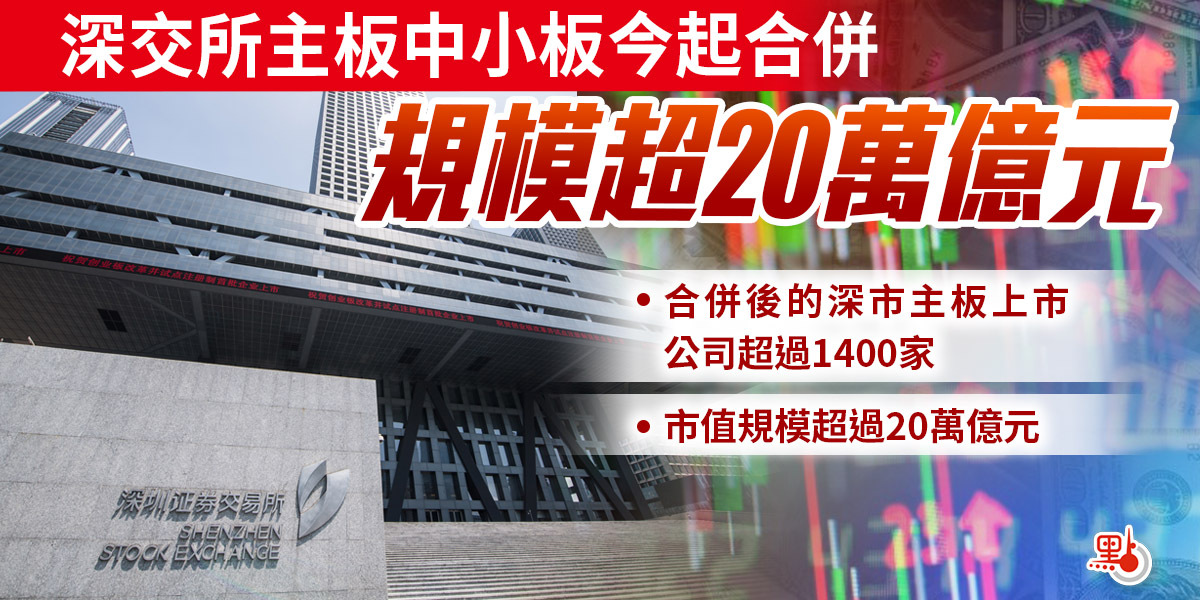 經中國證監會批准,深圳證券交易所主板與中小板於今日(6日)正式合併。未來深市將形成以主板、創業板為主體的市場格局。原中小板上市公司的證券類別變更為「主板A股」,證券代碼和證券簡稱保持不變。合併後的深市主板上市公司超過1400家,市值規模超過20萬億元。