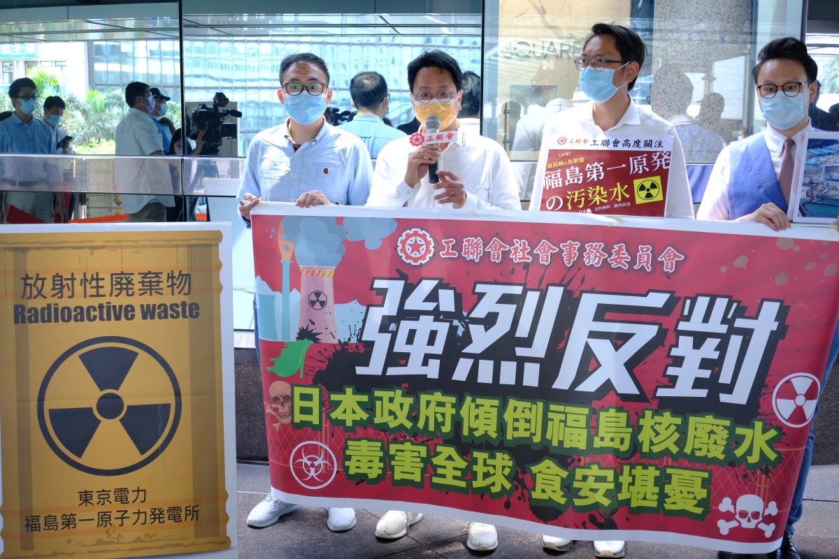 工聯會九龍東總幹事鄧家彪批評,日本311大地震引發核事故,嚴重海嘯導致福島核電廠損毁,電廠核反應堆需要長期注入海水冷卻(每日140公噸)。令人憤怒的是,日本政府妄顧人命安全,美國國務卿竟然發文表示感謝日本,令人驚訝,工聯會社會事務委員會前往日本駐港領事館表達強烈反對日本政府傾倒福島核廢水。