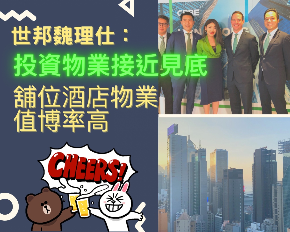 世邦魏理仕香港資本市場部執行董事兼主管甄浚岷表示,寫字樓及商舖物業租金及售價已經較高峰期明顯回落,坦言「已經跌到好殘」,接近見底。他認為目前最值博的範疇為零售舖位及酒店,預計通關後,此兩類物業的現金流將明顯改善,走勢也將會隨即反彈。他亦預期今年內工業物業將繼續受投資者追捧。基於對通關在即的預期,投資者亦可能會物色商舖的投資機會。