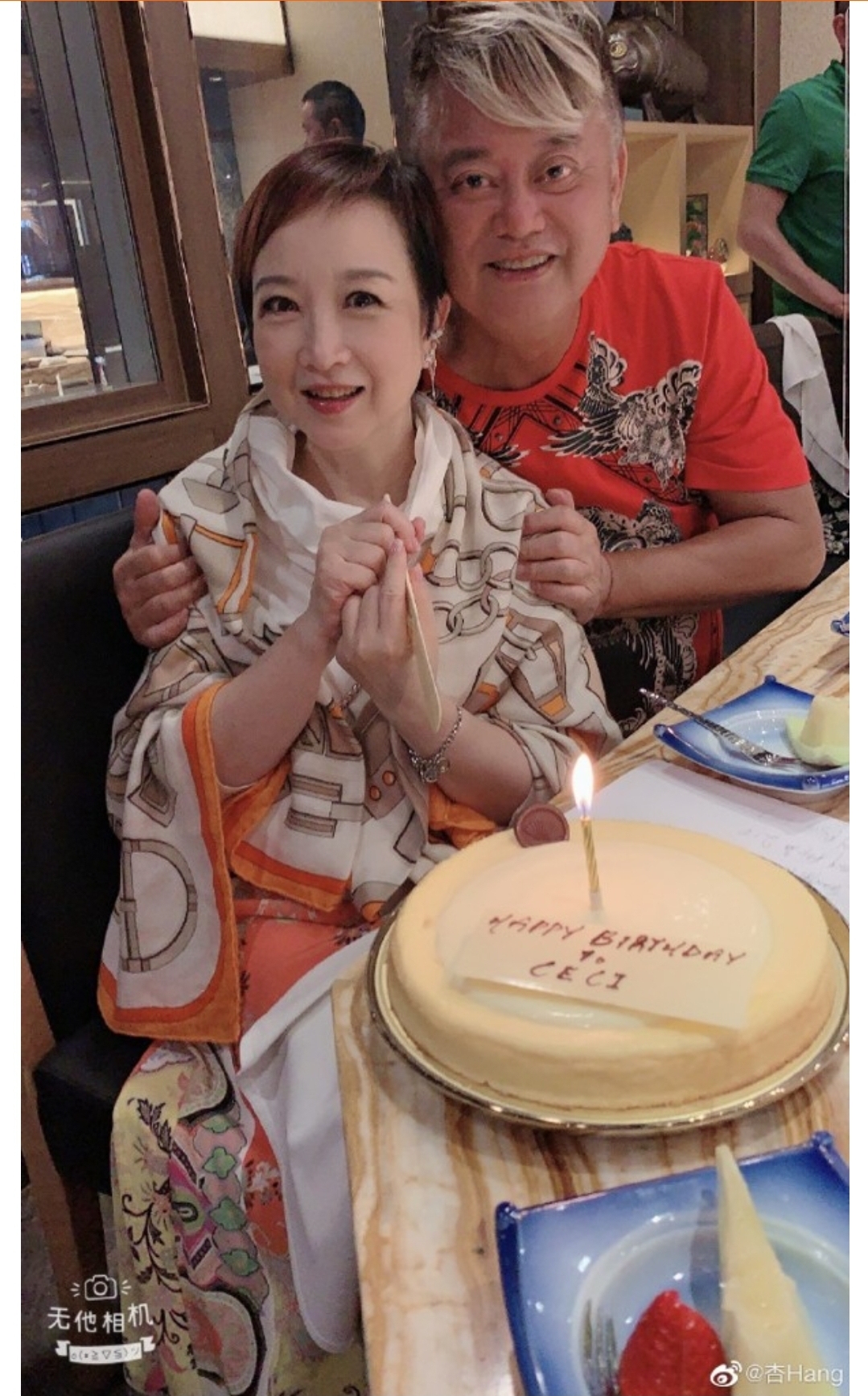 與志偉同日生日的藝人黃杏秀,與老公陳百祥一起去餐廳撐枱腳慶祝,更安排了生日蛋糕,相當浪漫。至於今年的生日願望,黃杏秀表示:「但願疫情快過去,世界和平。人人幸福快樂。」