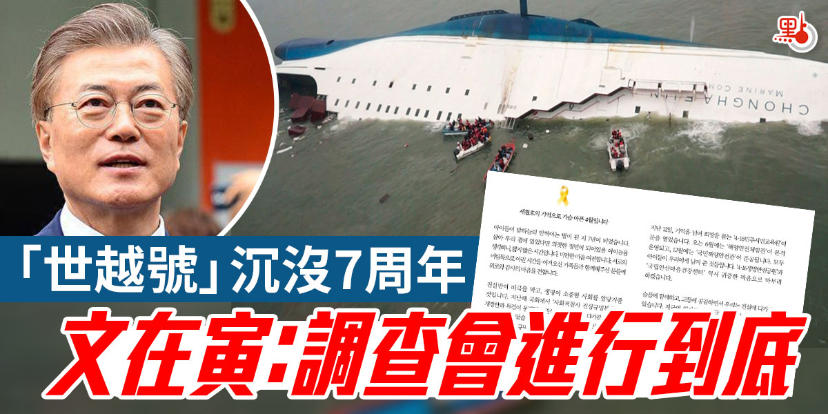 今日(16日)是韓國「世越號」客輪沉沒7周年忌日,韓國總統文在寅在社交平台上發文:「只有真相才能防止悲劇發生,才能讓全社會更珍視生命。」