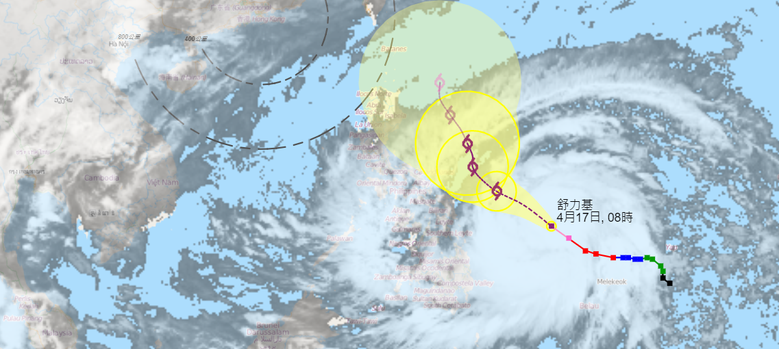 今年首個超強颱風「舒力基」,中心附近最高持續風速達到每小時195公里,成為今年的「風王」。今日(17日)正午12時,超強颱風「舒力基」集結在馬尼拉之東南偏東約1100公里,預料向西北偏西移動,時速約18公里,橫過菲律賓以東海域。