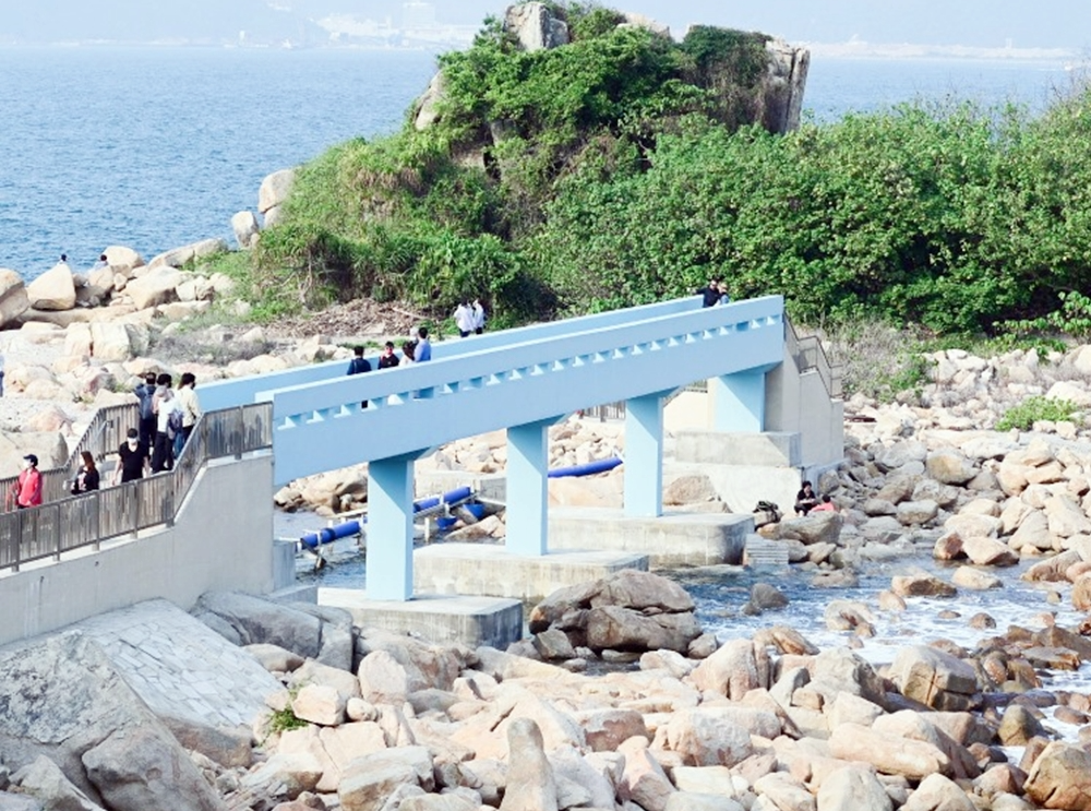 連接石澳後灘與大頭洲藍橋又名「情人橋」,在2018年被超強颱風「山竹」完全摧毀,令市民大為痛心。政府去年3月刊憲修復藍橋,事隔多時,石澳泳灘終正式重新開放,供遊客前往遊玩「打卡」。