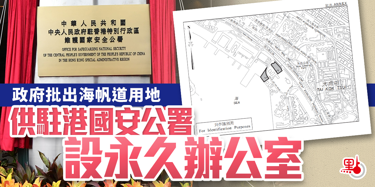 政府今日(23日)公布,會把大角咀海帆道一幅由兩部分組成的政府用地批予中央人民政府駐香港特別行政區維護國家安全公署,以便其設立永久辦公室及附屬設施。