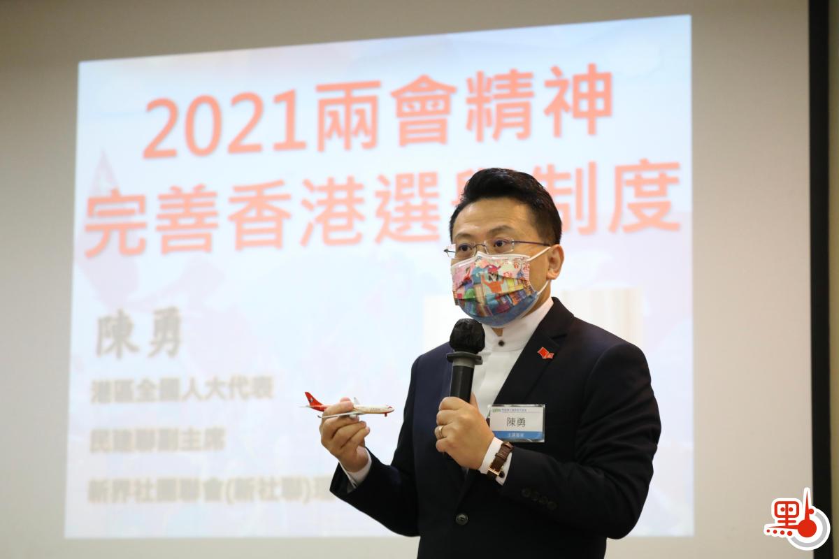 陳勇表示,在社會回復平靜後,香港現時需要追求「優質民主」和政治親民,令香港的選舉制度符合法治、更加穩定和不斷向前發展。完善選舉制度、貫徹落實「愛國者治港」原則,利於守護香港特區750萬市民的根本福祉。經過選舉的治港者,不僅要符合愛國者標準,亦需具備足夠高的水準治理香港,從而解決香港的民生問題,例如住房困難和縮小貧富差距,以及對青年人的培養工作和發展。他形容,要由「能者」治理香港。