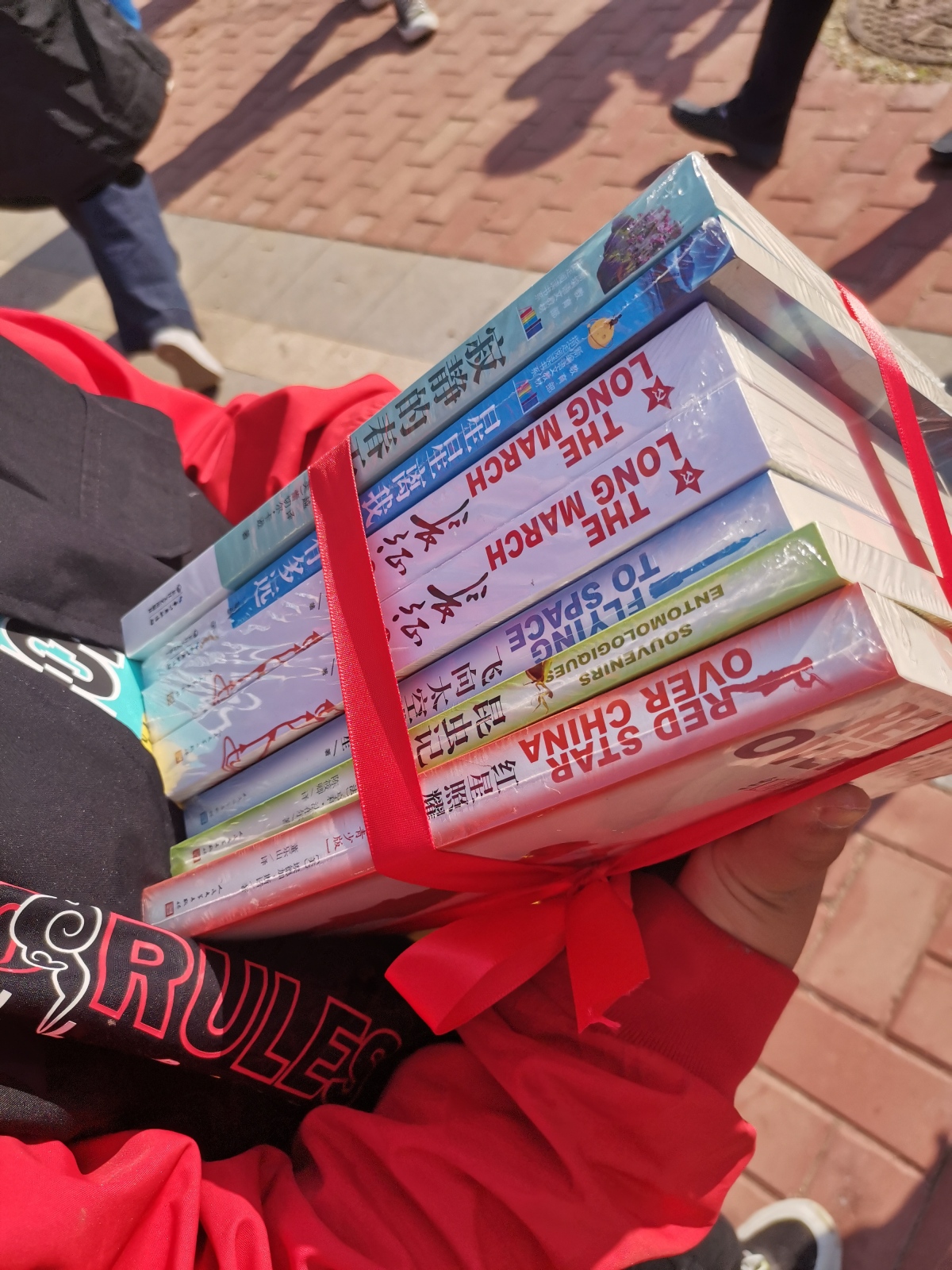 活動現場主辦方還向小學生贈送了圖書,其中包括《紅星照耀中國》《長征》等。獲贈的小朋友任毅表示,自己以前從電視劇里看到過紅軍翻雪山過草地非常辛苦,回家後要先閱讀《長征》這本書。
