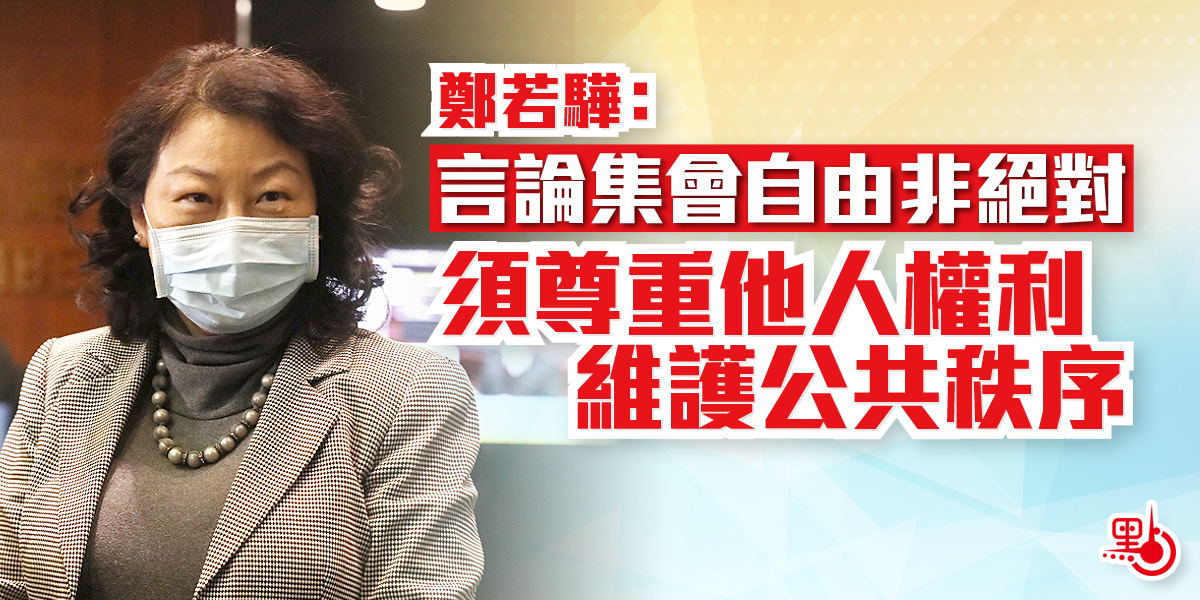 鄭若驊說,基本法和《香港人權法案》保障言論自由、和平集會、遊行和示威自由,但這些權利並不是絕對的,行使這些權利時要尊重他人的權利和維護公共秩序。